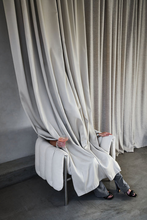 "Drapes with Benefits" is an exclusively selected collection of curtains with unique advantages. Besides adding a cozy atmosphere, our curtains offer unique features that positively impact your well-being and safety. We've meticulously chosen curtains with sound-absorbing, blackout, and natural materials like recycled wool and linen. Many of our curtains also have built-in flame retardancy, meaning the flame protection is embedded in the fibers, without chemicals applied afterward. This crucial feature ensures that if an accident occurs, the curtains won't catch fire.
